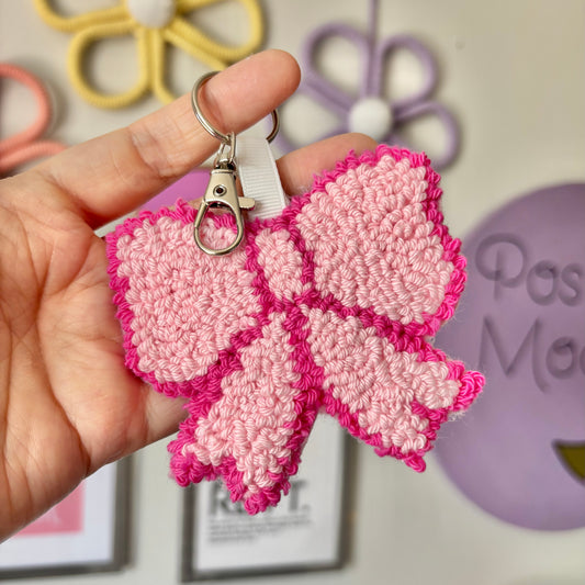 Bow punch needle keyring, cute decor, home decor, office decor, key accesory