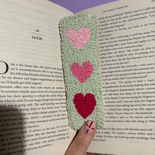 Hearts punch needle bookmark, cute decor, home decor, office decor