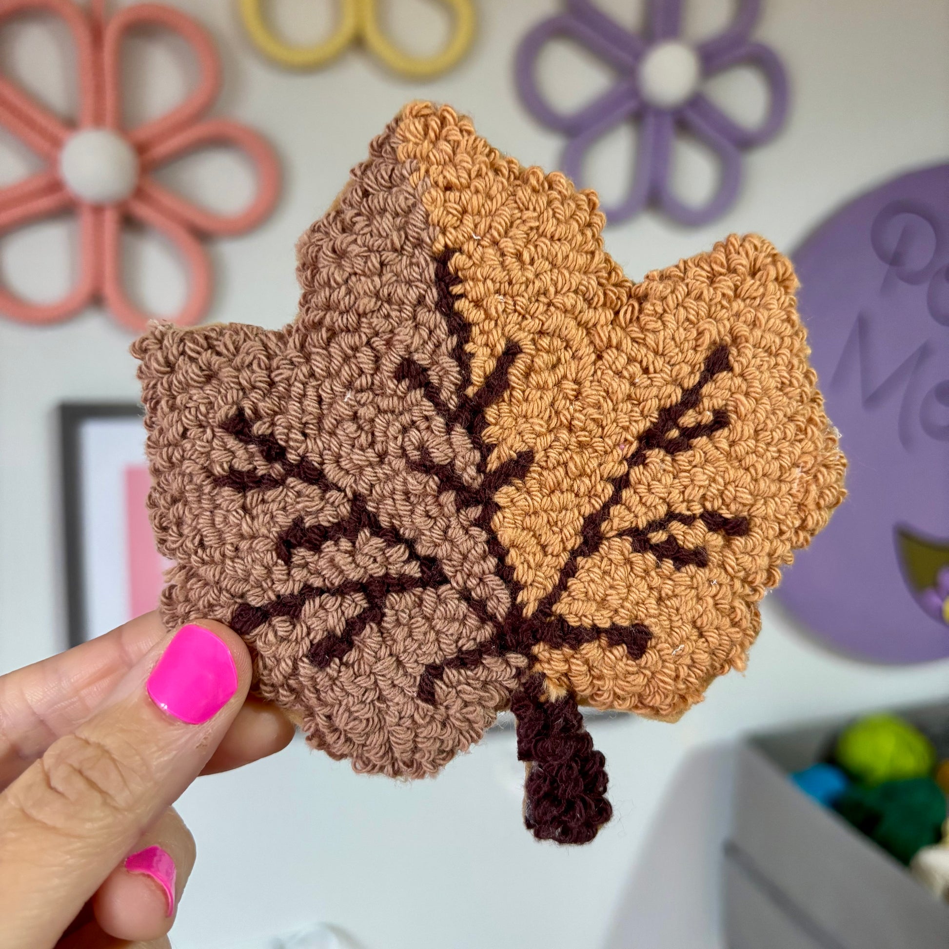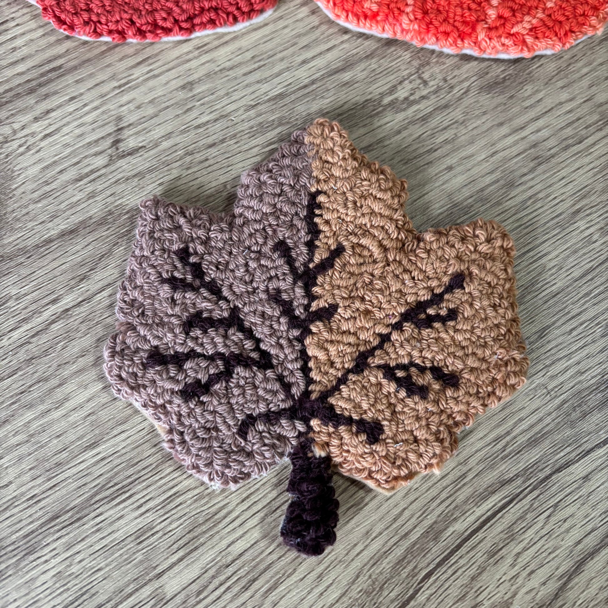 Autumn leaf punch needle drinks coaster, mug rug, cute decor, home decor, office decor
