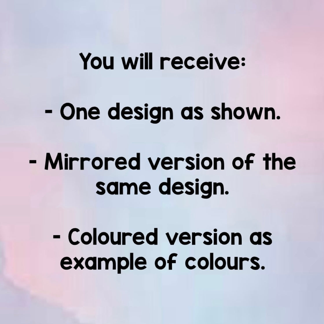 You will also receive a coloured in digital version of the design, which is purely just to offer colour ideas. Obviously you can decide yourself when creating.