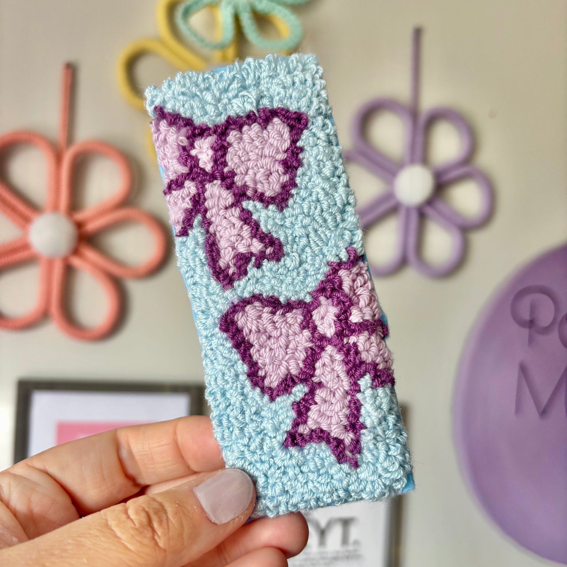 Double bow punch needle bookmark, cute decor, home decor, office decor
