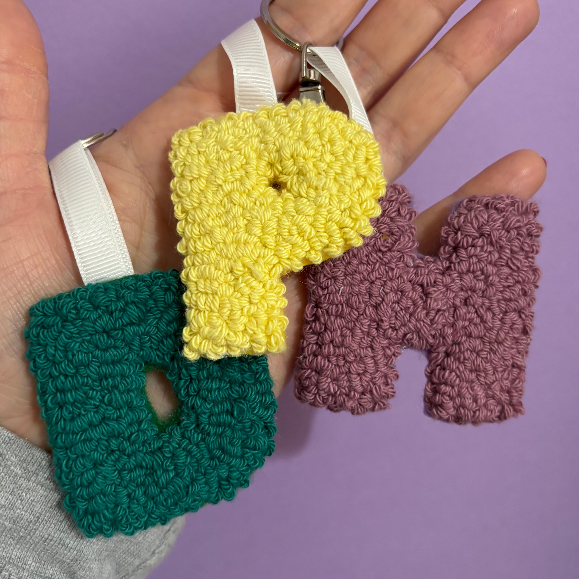 Initial punch needle keyring, cute decor, personalised, initial, key accesory