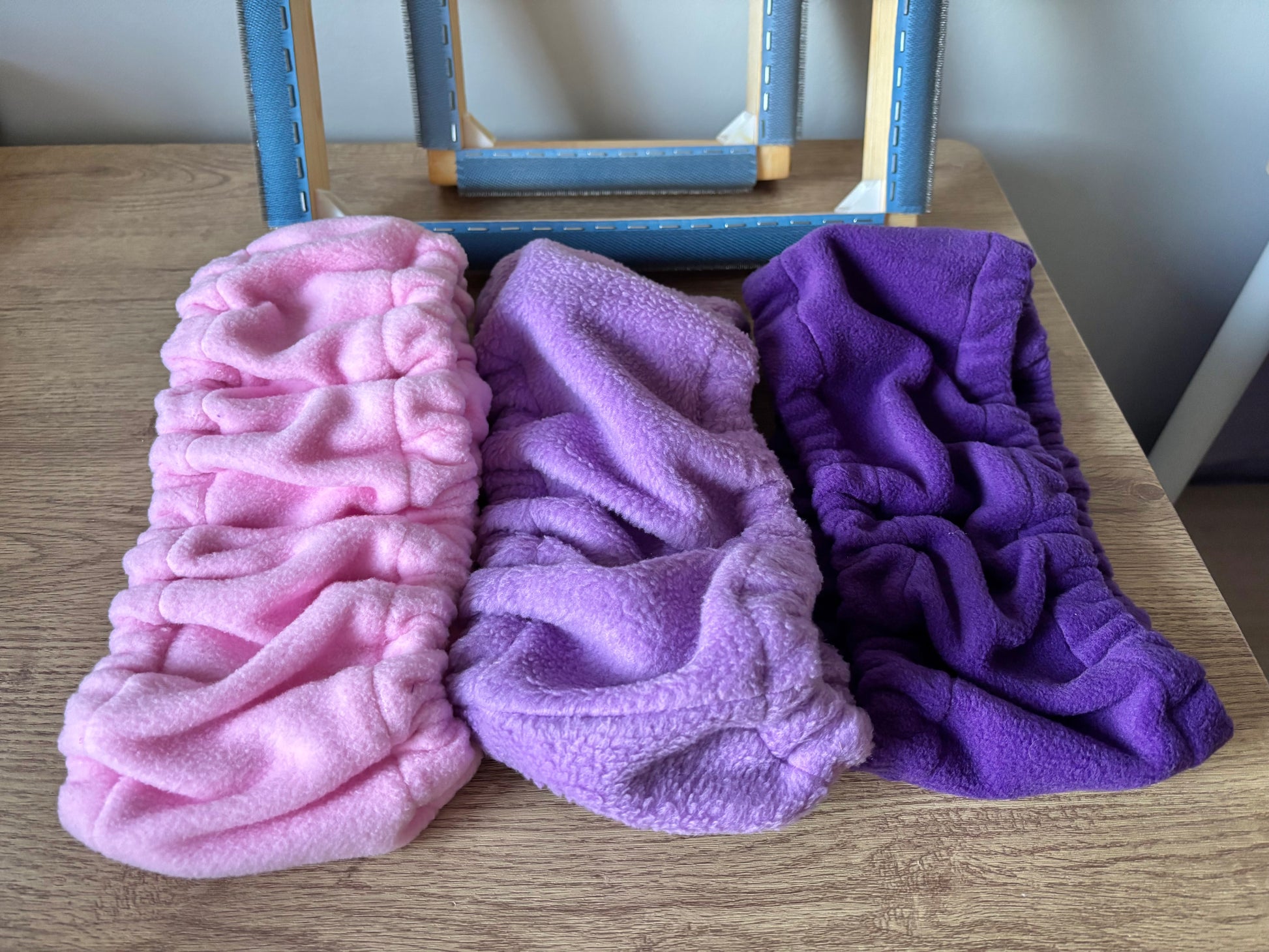 All frames come fully assembled, and with their own fleece covers to match the frame size chosen. The covers help protect your hands from the grippers. They get super sharp so please be careful! The fleece covers we provide have been made by a fellow small business, Sashcrafters keepsakes, who we have collaborated with, and are totally unique to Posy Moon! Colours for the covers differ at the moment depending on stock our partner has, so will be sent at random.
