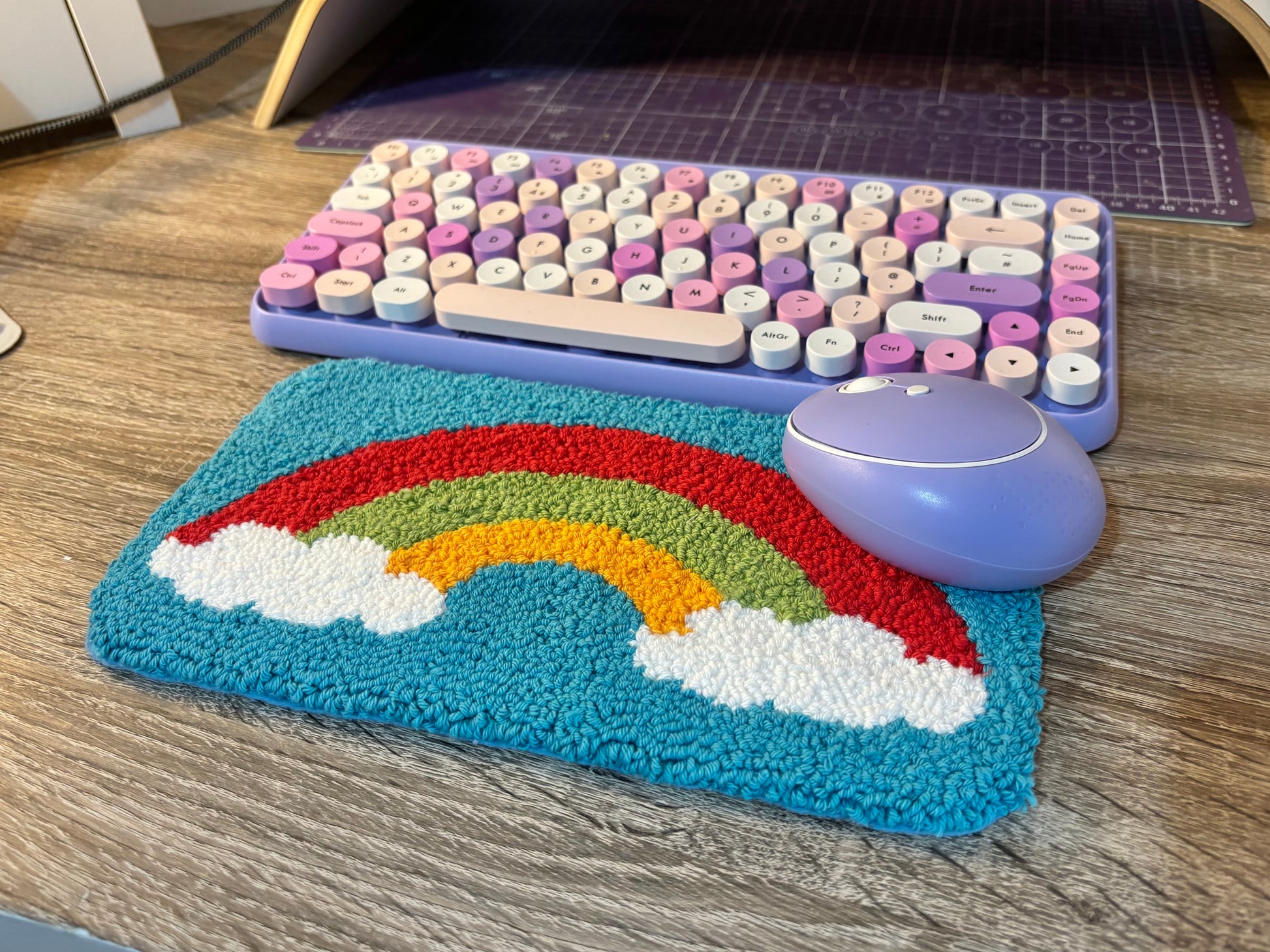 Rainbow punch needle desk mat, desk decor, desk accessory, cute decor, office decor